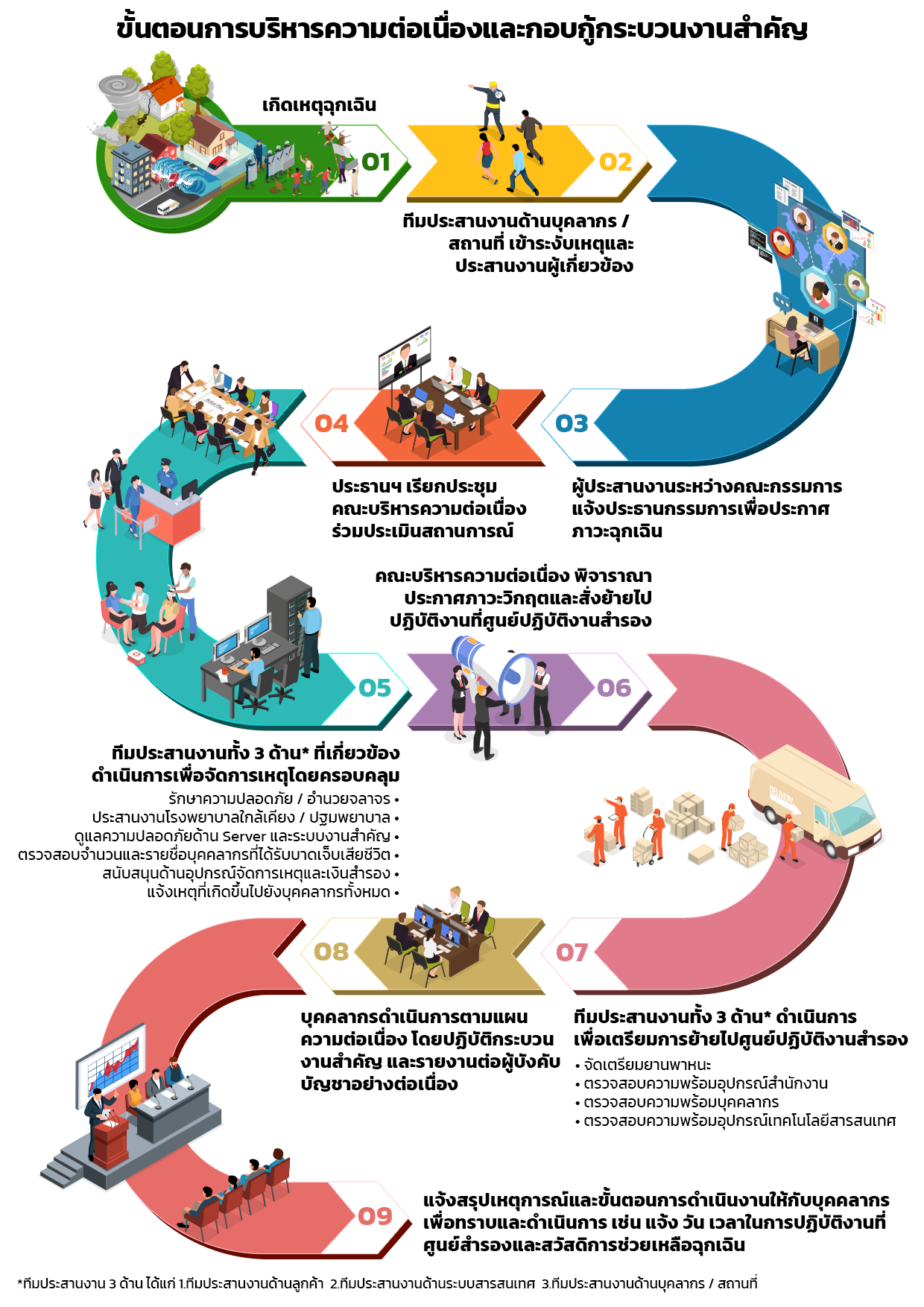 - แต่งตั้งคณะทำงานบริหารความต่อเนื่องทางธุรกิจ (Business Continuity Management Team)
